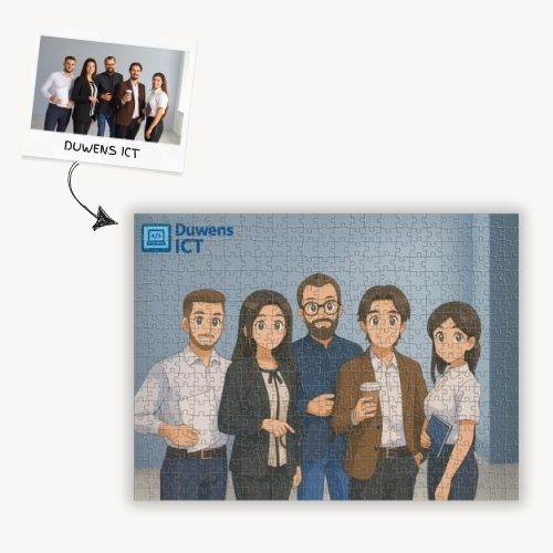 Laat je team schitteren op een unieke fotopuzzel! Van teamfoto tot bedrijfspand of logo: wij maken er een moderne puzzel van in jullie gekozen stijl. Perfect als relatiegeschenk, attentie voor personeel of verkoopproduct. Wij zorgen voor de productie en verzending – jullie voor het moment van verrassing.