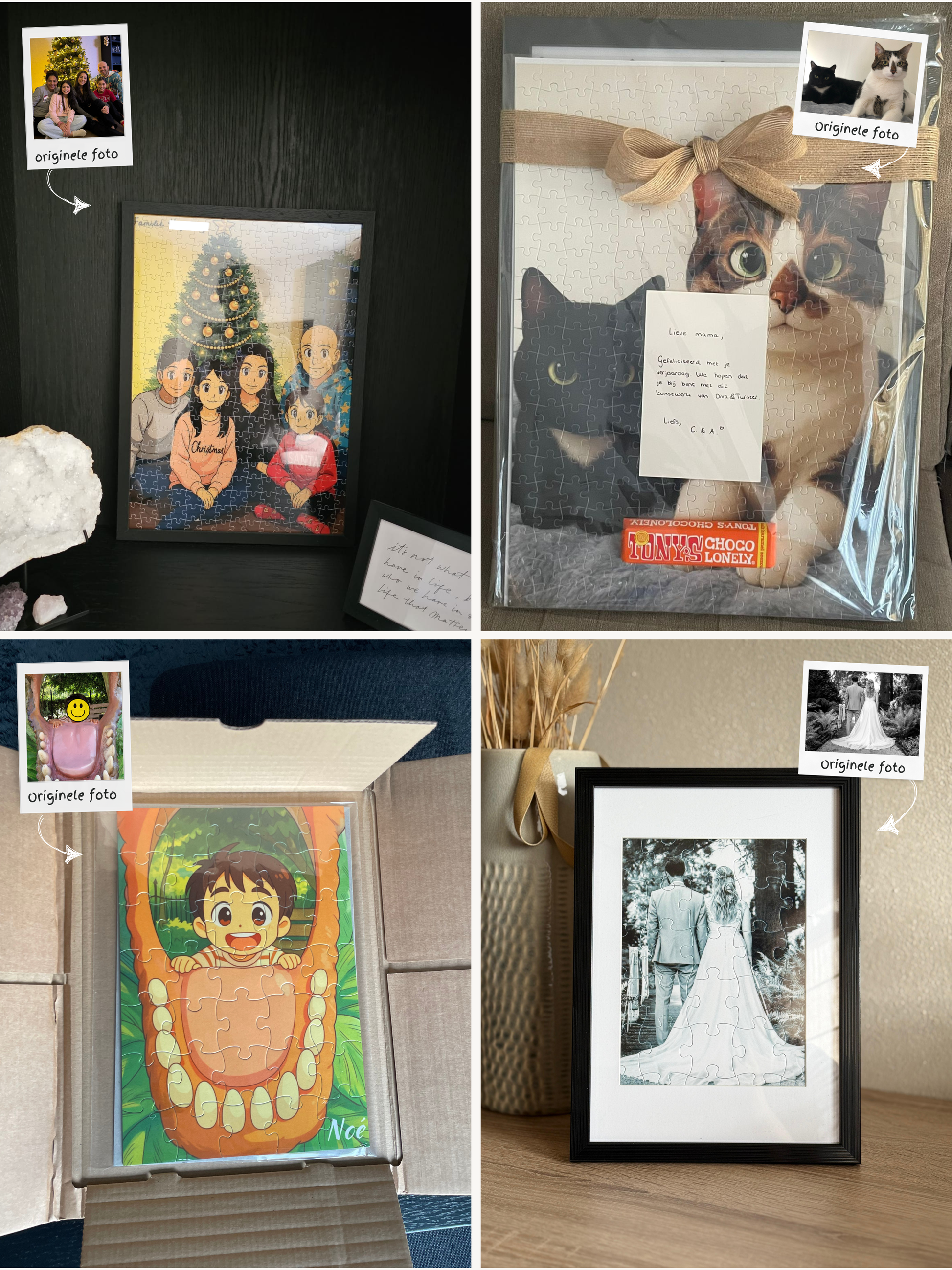 Soms zit er meer in een foto dan je in één oogopslag ziet. Een blik, een grap, een herinnering die je steeds opnieuw wilt beleven. Daarom maken we bij puuzl geen standaard puzzels, maar persoonlijke verhalen in stukjes — geïllustreerd in een stijl die bij jou past.
