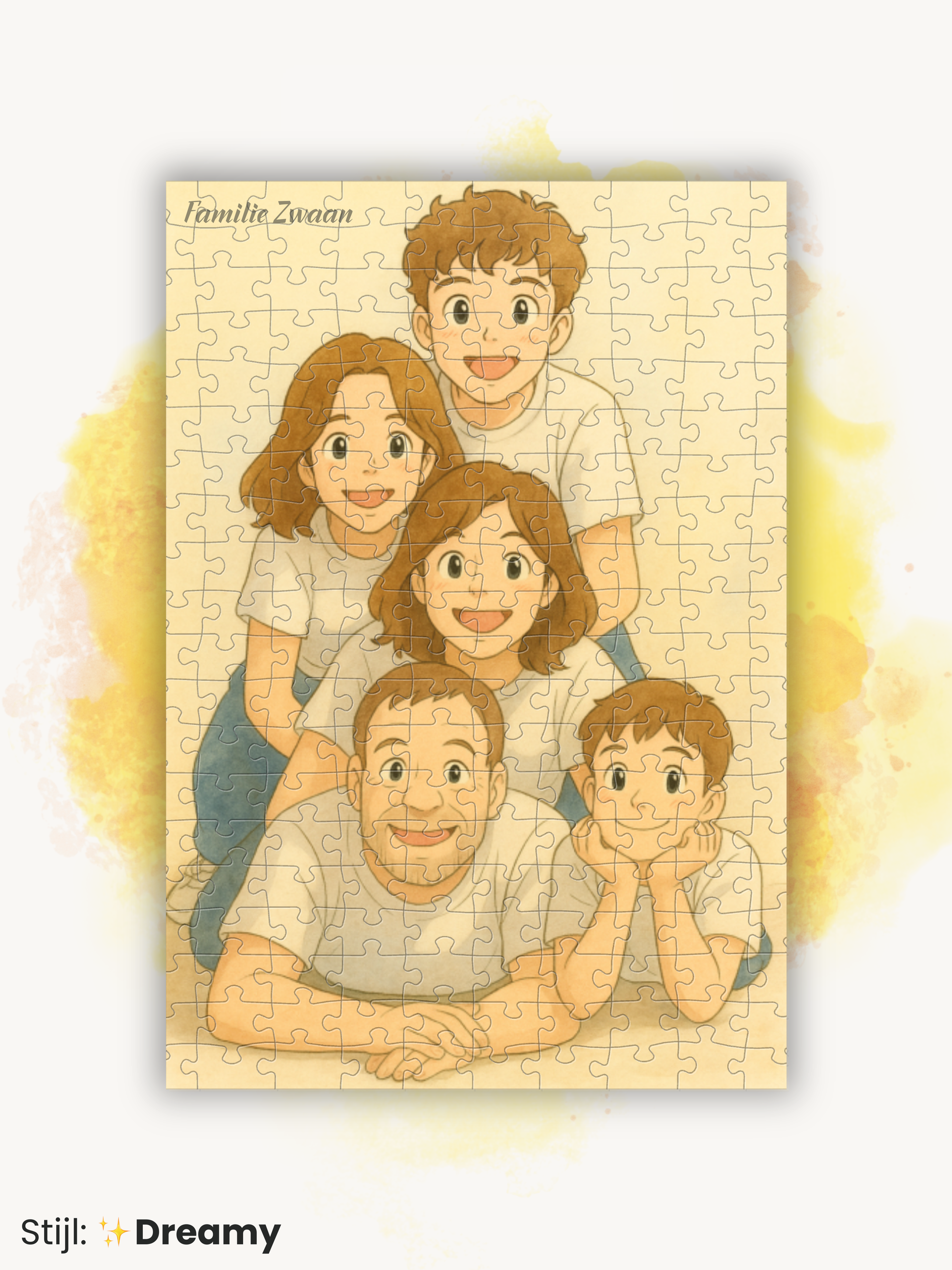 Kies uit één van onze vijf stijlen voor jouw puuzl: Clean, Anime, Dreamy, Cartoon of Nostalgia.